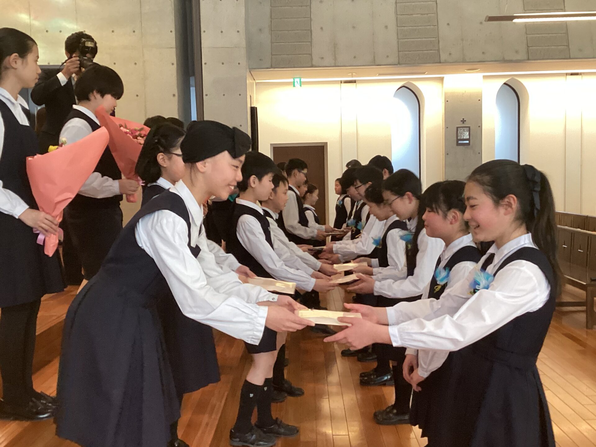 演奏会後には卒団する6年生に向けた感謝のセレモニーを開き,3~5年生から花束やメッセージのプレゼントをしました。