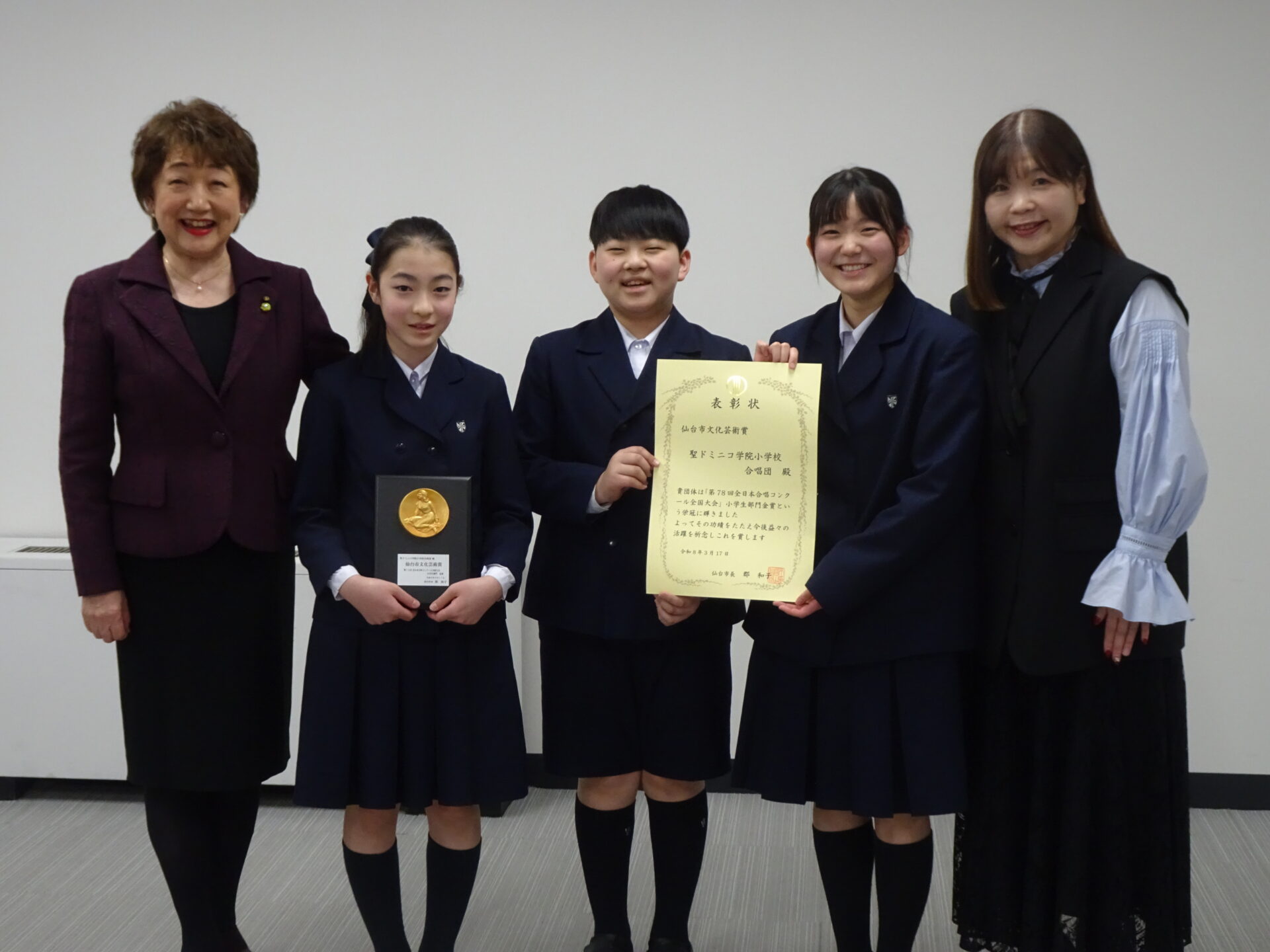 また,17日(火)には「仙台市文化芸術賞」の表彰式があり,団長,副団長の3名が合唱団を代表して参加しました。