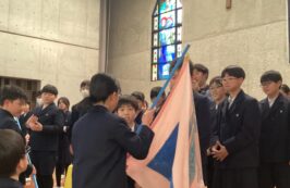 会の終わりには「たてわり引継ぎ式」を行い,たてわりチームの旗を6年生から5年生に引き継いでいきました。